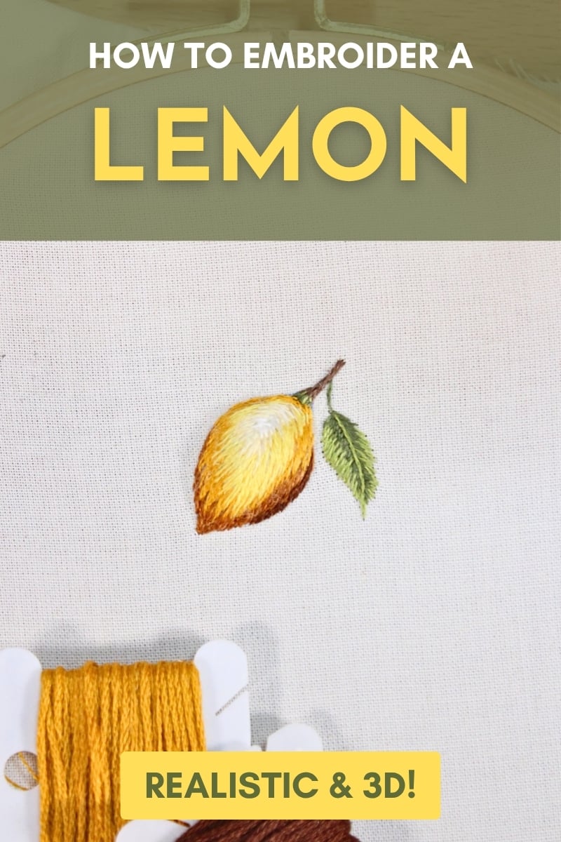 In this tutorial, you’ll learn how to create a realistic lemon that literally pops off the fabric! Using stumpwork (3-dimensional embroidery techniques) and thread painting (a style of embroidery that primarily uses the long and short stitch to blend colors), you’ll be able to create this vibrant lemon embroidery.