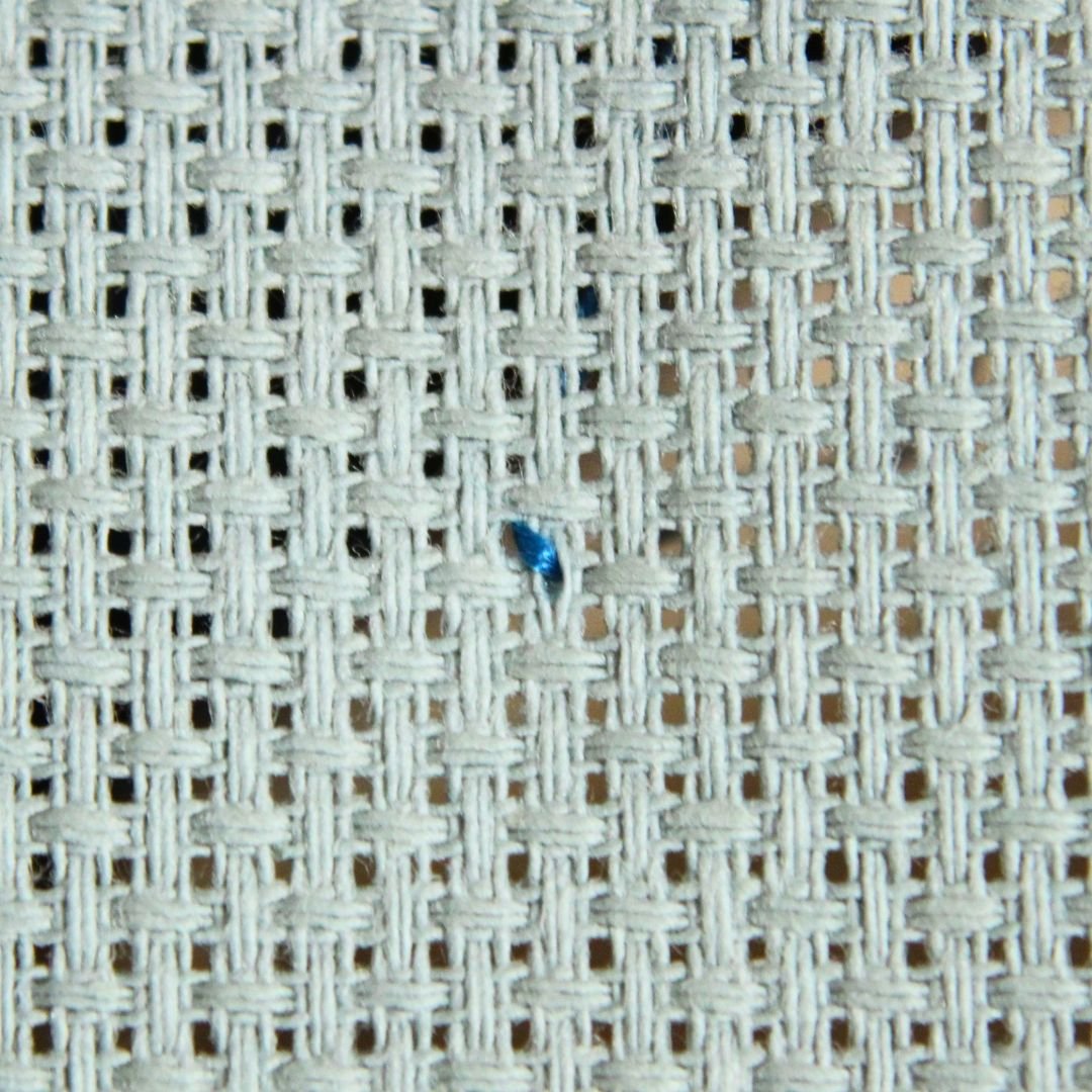 For Aida fabric, the stitch will start in the corner of a thread block through one of the holes and end in the middle of the thread block.
